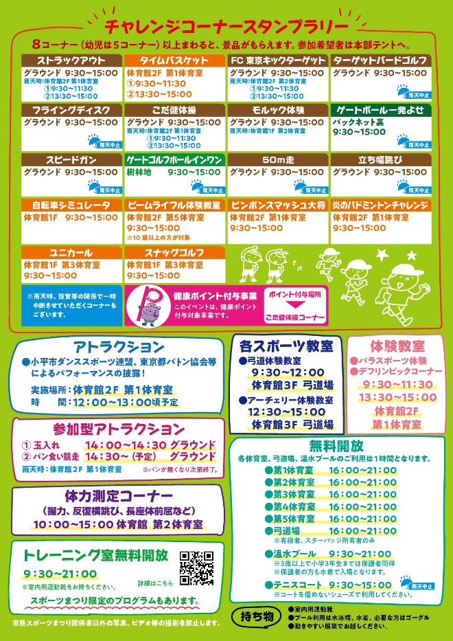 2025年10月12日(日)一般社団法人小平市スポーツ協会・小平市が主催する「第36回市民スポーツまつり」が開催されます。