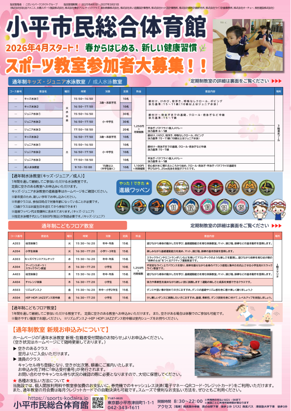 通年水泳教室 新規・在籍者受付開始のお知らせ – 小平市体育施設