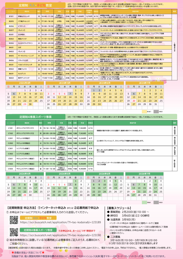 2月20日(金)抽選申し込みスタート! 4月スタート 教室申込みのご案内のお知らせ