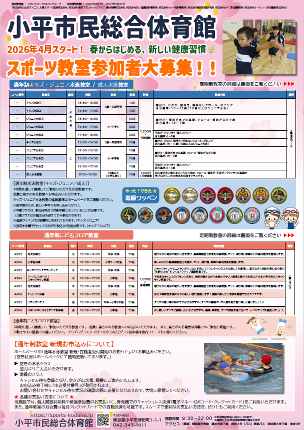 通年制水泳教室の空き状況・キャンセル待ちはこちらをご覧ください。